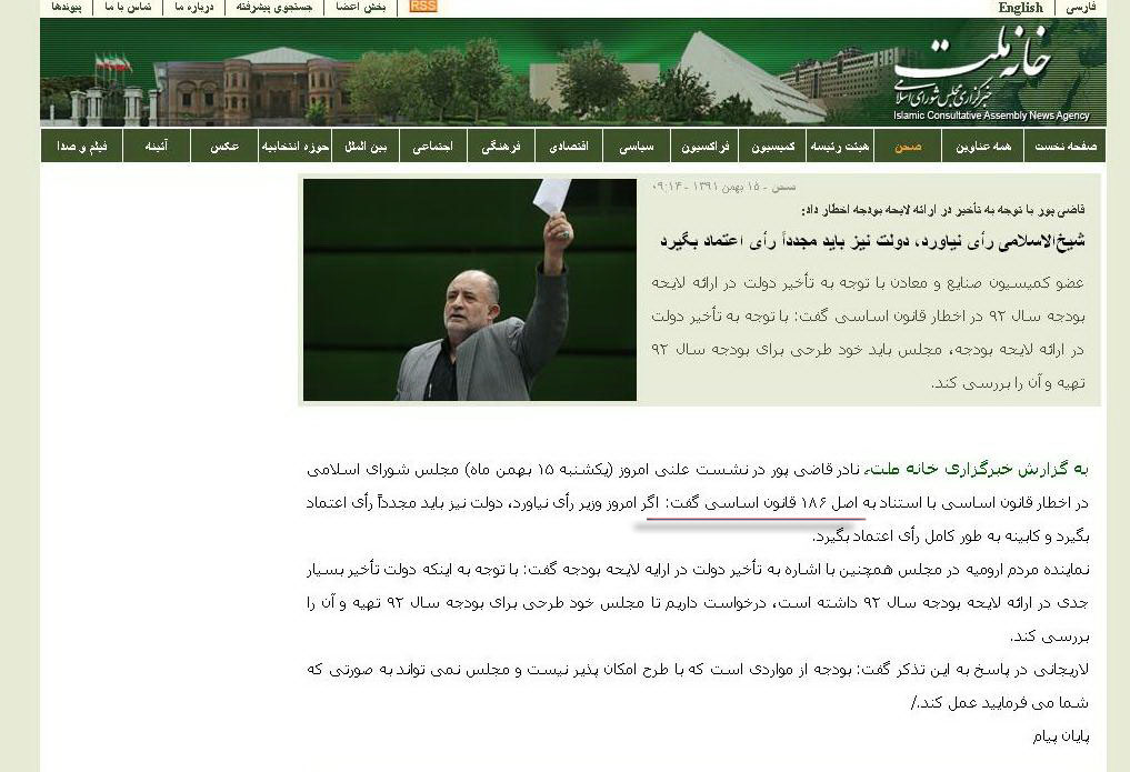 داخلی مجلس استناد کرد اما خبرگزاری خانه ملت به عنوان پایگاه رسمی مجلس شورای