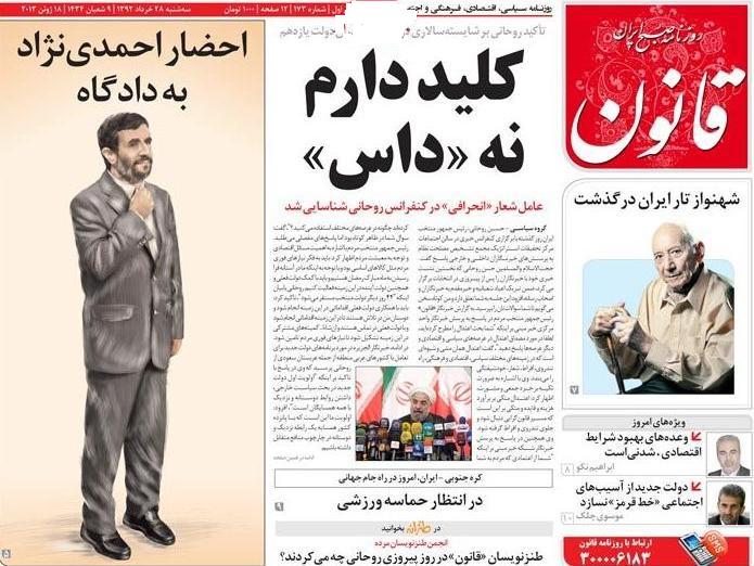 بولتن نيوز: تصوير صفحه اول روزنامه هاي سه شنبه 28 خرداد 1392