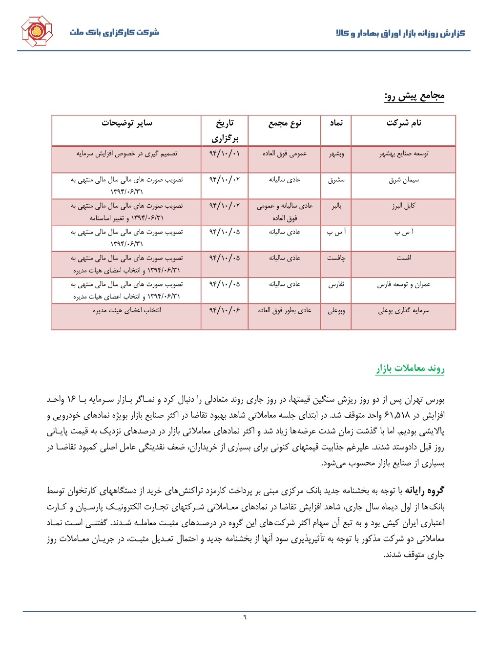 امید می رود انتشار اینگونه اخبارهای تحلیلی در حوزه بازار سرمایه، بتواند رضایت شما خوانندگان را جلب کند.