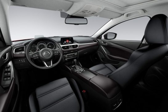 در داخل کابین بهبودهای مناسبی صورت گرفته است. طراحی غربیلک فرمان تغییر کرده و صفحه نمایش رنگی 4.6 اینچی و نیز هدآپ دیسپلی گرافیک هوشمندانهتری دارند. البته کروم احاطه کنندهی اطراف اهرم تعویض دنده در این کلاس معمول هستند. بزرگترین بهروزرسانی مزدا 6 پنهان بوده و آن استفاده از دوربین جلو برای استفاده در سیستم ترمز اضطراری خودکار است. مدلهای فول مزدا 6 هماکنون غربیلک فرمان گرم شونده، صندلیهای حافظهدار و آینههای برقی را ارائه میکنند.