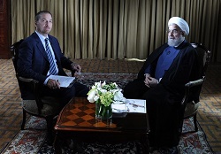 روحانی در پاسخ به سوال مجری این شبکه تلویزیونی مبنی بر اینکه" شاید یکی از دلایلی که بانکهای بینالمللی در همکاری با ایران تردید دارند نقش سپاه در اقتصاد ایران و توسعه موشکهای دوربرد است آیا راهی هست که نقش سپاه را در اقتصاد کمرنگتر کند که باعث راحتی بیشتر بانکهای بینالمللی شود؟" تصریح کرد: شرکتهایی در ایران هستند که ممکن است بخشی از سهامشان به شرکتهایی تعلق داشته باشد که آن شرکتها وابسته به نیروهای نظامی باشند، اما در عین حال آن شرکتها فعالیتهای اقتصادی میکنند. امروز در ایران برخی از بزرگراهها توسط همان شرکتها ساخته میشود، برخی بنادر توسط همان شرکتها ساخته میشود، حتی در زمینه نفت و گاز، گاهی برخی از همان شرکتها فعالیت دارند و فعالیتهای عادی اقتصادی، مثل ساخت بندر، بخشهای نفت، گاز و همچنین در زمینه اتوبانها. این ربطی به مسأله نظامی ندارد. هر شرکتی میتواند وابسته به هر دستگاهی باشد کار عمرانی انجام دهد، بنابراین، فشار به بانکها در زمینه کار با ایران به این بهانه قطعاً تخلف از برجام است.