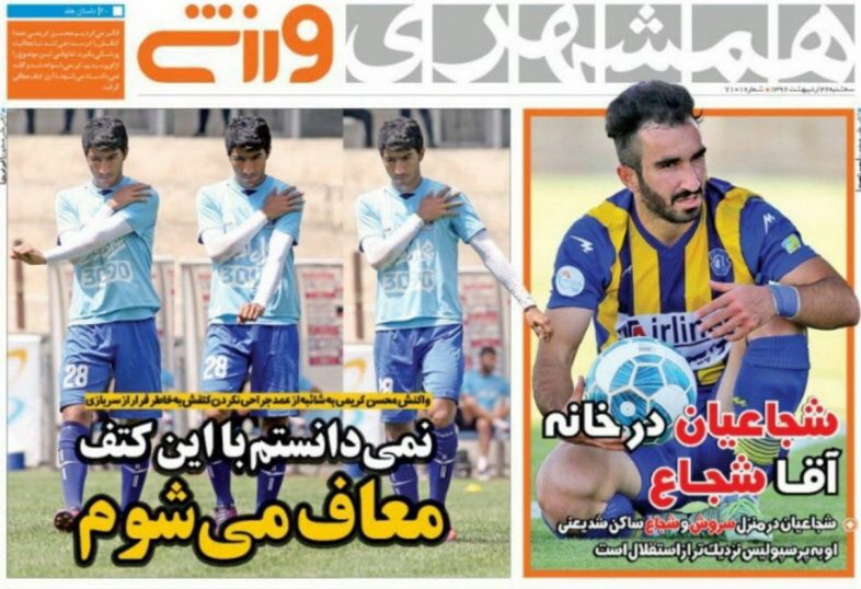نیم صفحه روزنامه های ورزشی بیست و ششم اردیبهشت