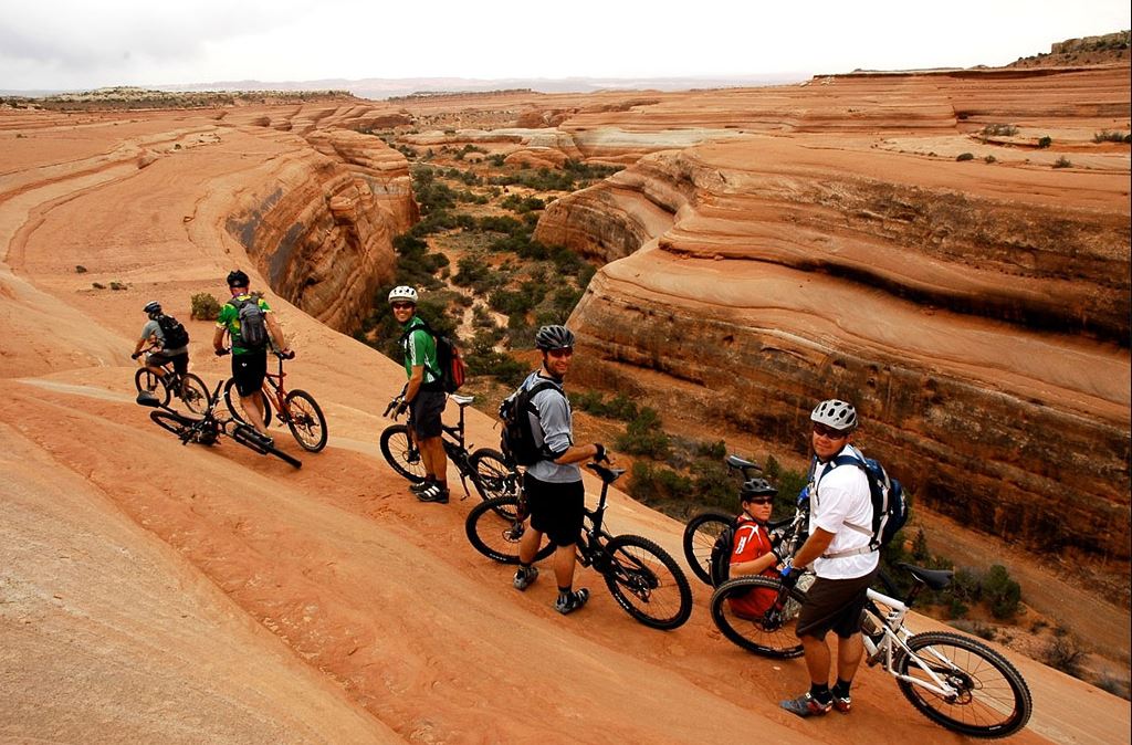 دوچرخه سواری بر بالای کوهای بلند، بر روی تخته سنگ های صاف