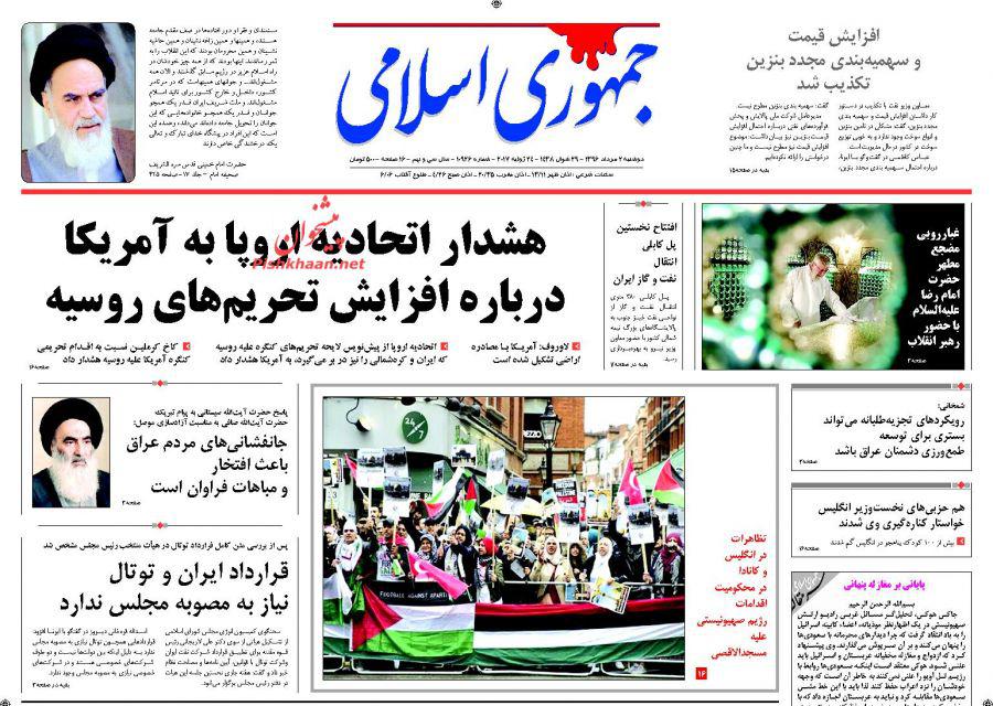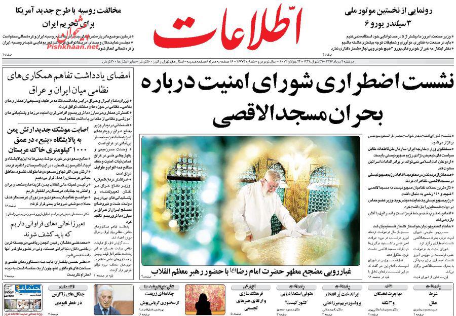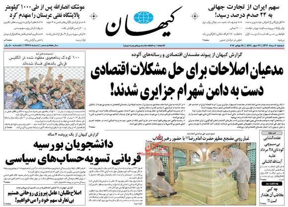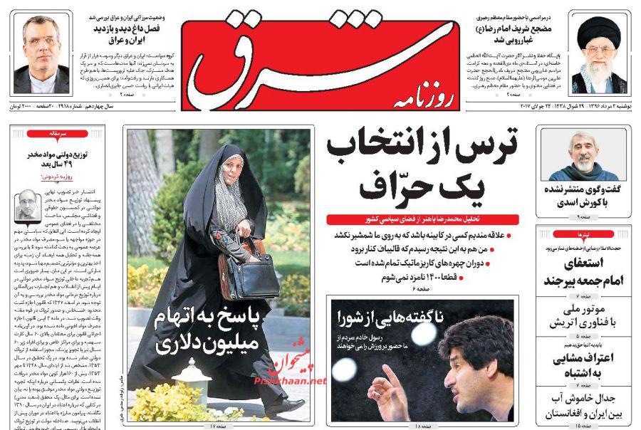 صفحه نخست روزنامه های دوشنبه 2 مرداد 96