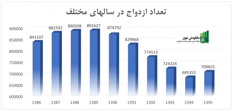آخرین آمار منتشر شده در سازمان ثبت احوال، تعداد ازدواج تا بهمن ماه ۱۳۹۵ را نشان می دهد. اما در ارتباطی که مقاومتی نیوز با کارشناسان این سازمان برقرار کرد، تعداد ازدواج در اسفندماه دریافت گردید.