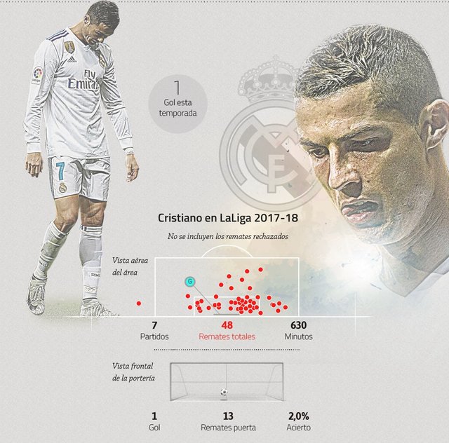 رونالدو تنها دو درصد ضرباتش به گل تبدیل شده است. گریزمان این رقم را به ۹.۱ درصد رسانده است. دیگر آمار بد مهاجم فرانسوی ناکامی اش در گلزنی از ۲۷ سپتامبر است. او در آن شب تک گل تیمش را برابر چلسی در لیگ قهرمانان اروپا به ثمر رساند (اتلتیکو دو بر یک مغلوب حریف انگلیسی اش شد).