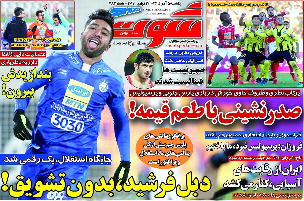 تصاویر نیم صفحه روزنامههای ورزشی پنجم آذرماه به مسائل مختلف ورزش به ویژه فوتبال اختصاص دارد.