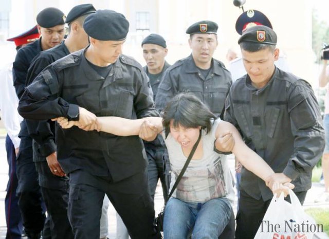 براساس مشاهدات خبرنگار فرانسه دستکم 30 معترض که برخی از آنها افراد سالخورده هستند توسط پلیس دستگیر شدند. این راهپیمایی در آلماتی پایتخت قزاقستان برگزار شد.