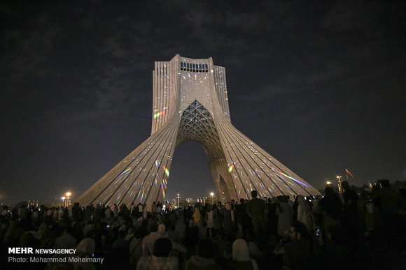 نخستین اجرای جهانی استفان دوژراندو با نام هزارتوی زمان همراه با نورپردازی برج آزادی امشب پنجشنبه با حضور مردم در میدان آزادی برگزار شد .