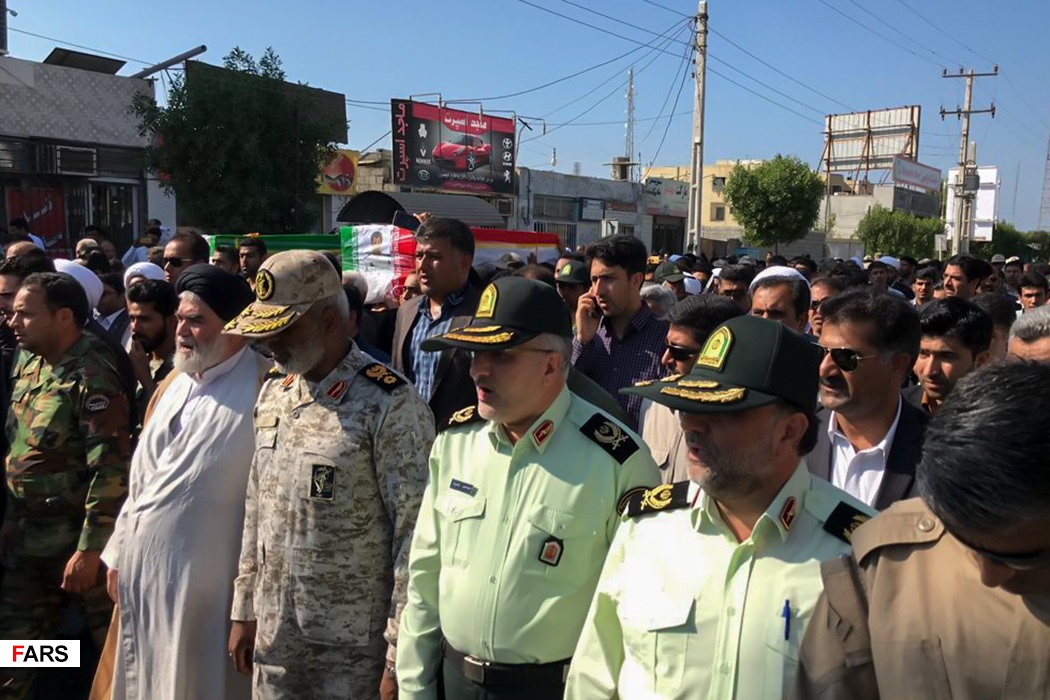 پیکر مطهر شهدای حادثه تروریستی چابهار صبح امروز جمعه ۱۶ آذر ۱۳۹۷ با حضور سردار محمد مارانی، سردار محمد قنبری ، ائمه شیعه و سنی چابهار و ... تشییع شد.