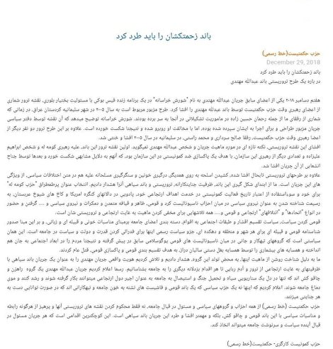 در زیر متن کامل بیانیه گروهک تروریستی کمونیست کارگری در همین ارتباط را ملاحظه می کنید؛