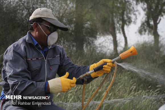 عکس/مبارزه با ملخ های صحرایی با هواپیمای سمپاش