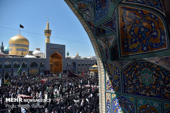مراسم عزاداری و نماز ظهر عاشورا با حضور پرشور عزاداران حسینی در حرم مطهر رضوی برگزار شد.