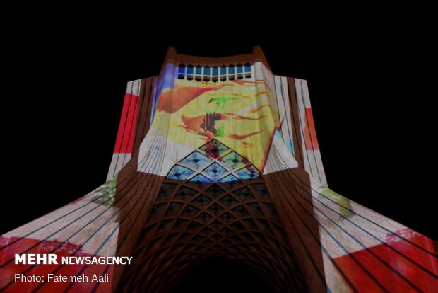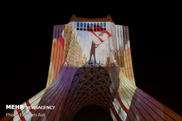 برج آزادی برای همدردی ملت ایران با مردم لبنان پس از انفجار عظیم بیروت به زنگ پرچم لبنان درآمد.