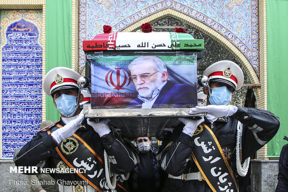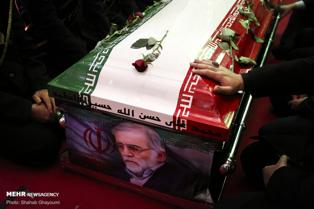 آیین خاکسپاری دانشمند شهید محسن فخری زاده