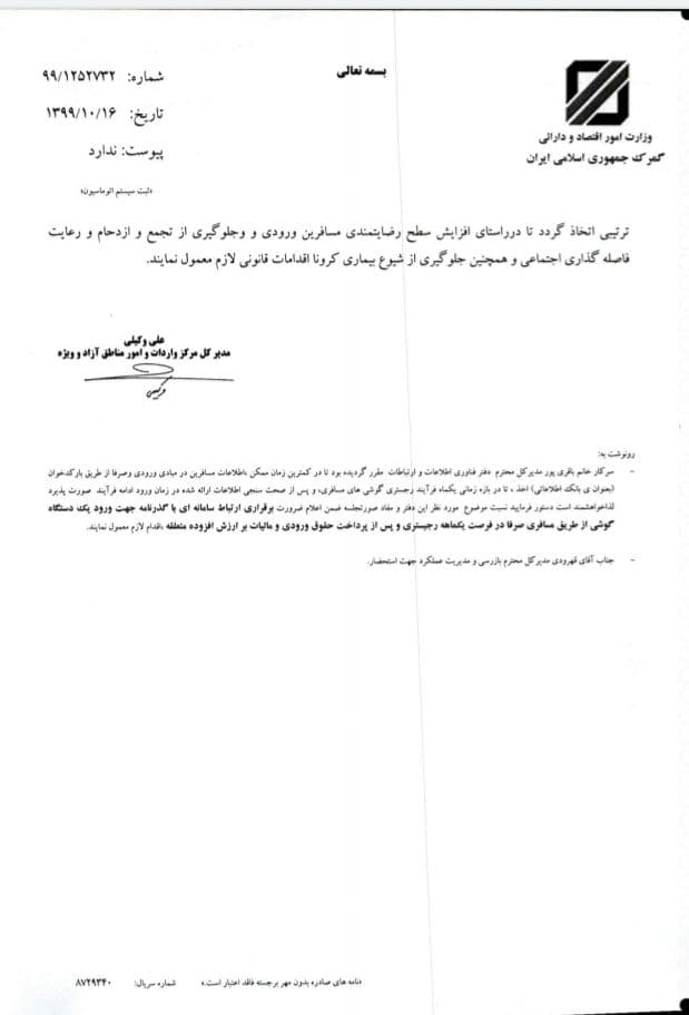 به گزارش بولتن نیوز، مسافرین ورودی به کشور از تاریخ ۱۲ تیر ۹۹ تا اول دی۹۹ می توانند بصورت غیر حضوری از طریق سامانه https://epl.irica.ir/ImeiRegister حداکثر تا پایان دی ماه ۹۹ نسبت به انجام فرآیند رجیستری گوشی خود اقدام کنند