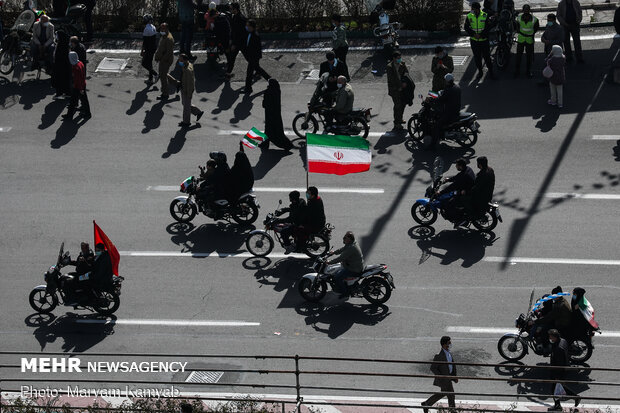 به گزارش بولتن نیوز، مراسم راهپیمایی چهل و دومین سالگرد فجر انقلاب اسلامی، چهارشنبه ۲۲ بهمن ماه ۹۹ همزمان با سراسر کشور در تهران برگزار شد و مردم به وسیله موتور ، دوچرخه وخودرو در مسیرهای هر ساله راهپیمایی حاضر شدند.