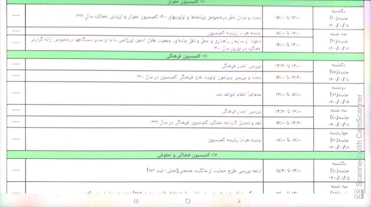 دستور کار کمیسیونهای تخصصی در اولین هفته سال جدید بدین شرح است؛