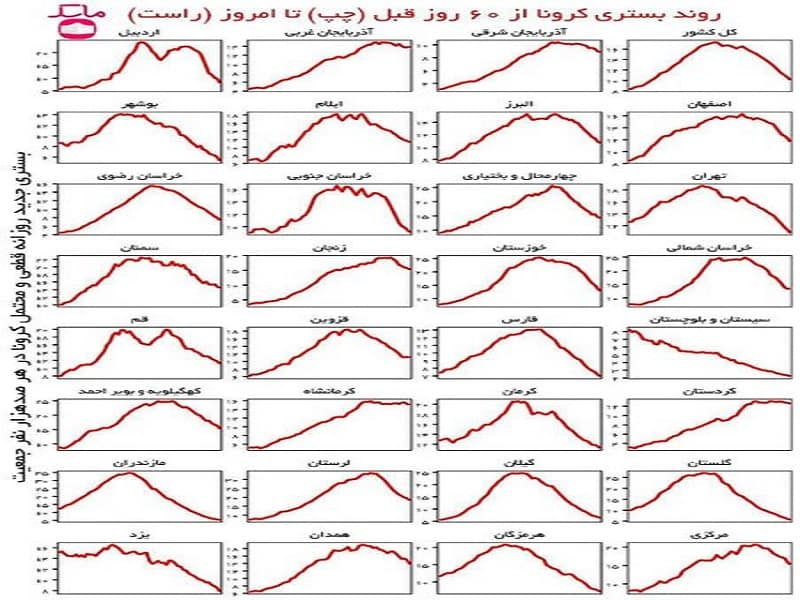 تمامی استانهای کشور از قله خیز پنجم کرونا عبور کردند، اما هنوز آمار ابتلا و بستری در بسیاری از شهرها بالا است.