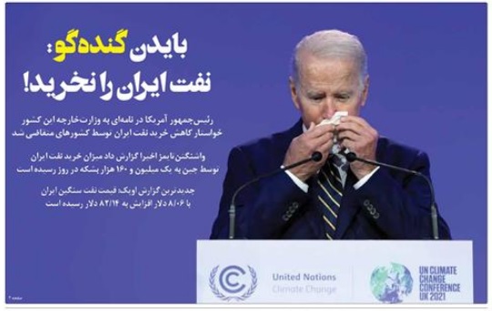 به گزارش بولتن نیوز، رئیس‌جمهور آمریکا که دولتمردان و تیم سیاست خارجی‌اش از ادامه مذاکرات وین استقبال کرده و ادعا می‌کنند ایالات متحده برای بازگشت به برجام آماده است، روز جمعه طی یادداشتی به وزارت خارجه آمریکا گفت به اندازه کافی عرضه نفت وجود دارد تا دیگر کشورها خرید نفت از ایران را کاهش دهند. به گزارش خبرگزاری رویترز، کاخ سفید ملزم است هر ۶ ماه یک بار تأیید کند که عرضه کافی نفت در جهان به منظور حفظ تحریم‌ها علیه ایران که سال ۲۰۱۲ در دوران ریاست‌جمهوری «باراک اوباما» تحمیل شد، وجود دارد. بایدن در یادداشت خود به وزارت خارجه آمریکا گفت: «مطابق تصمیمات قبلی، عرضه کافی نفت و فرآورده‌های نفتی از کشورهایی به غیر از ایران وجود دارد تا امکان کاهش حجم نفت و فرآورده‌های نفتی خریداری شده از ایران یا از طریق مؤسسات مالی خارجی فراهم شود». بنا بر گزارش رویترز، طبق تحریم‌های آمریکا، خریداران نفت از ایران با خطر تحریم‌های ثانویه روبه‌رو هستند که به مفهوم قطع ارتباط آنها با مراکز و امکانات تجاری و مالی آمریکاست. اهمیت اظهارات بایدن آنجاست که این یادداشت از سوی رئیس‌جمهور آمریکا در آستانه نشست مجازی روز دوشنبه هفته جاری (۲۴ آبان‌ماه) وی با «شی جین پینگ» رئیس‌جمهور چین مطرح شده است.