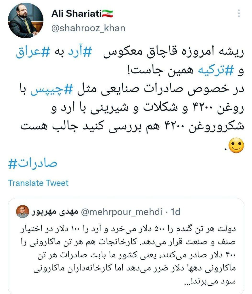 علی شریعتی، عضو اتاق بازرگانی ایران با اشاره به توییت بالا: