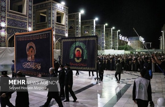 آیین سنتی شام غریبان حسینی توسط خدام بارگاه ملکوتی حرم مطهر رضوی در بست شیخ طبرسی برگزار شد.