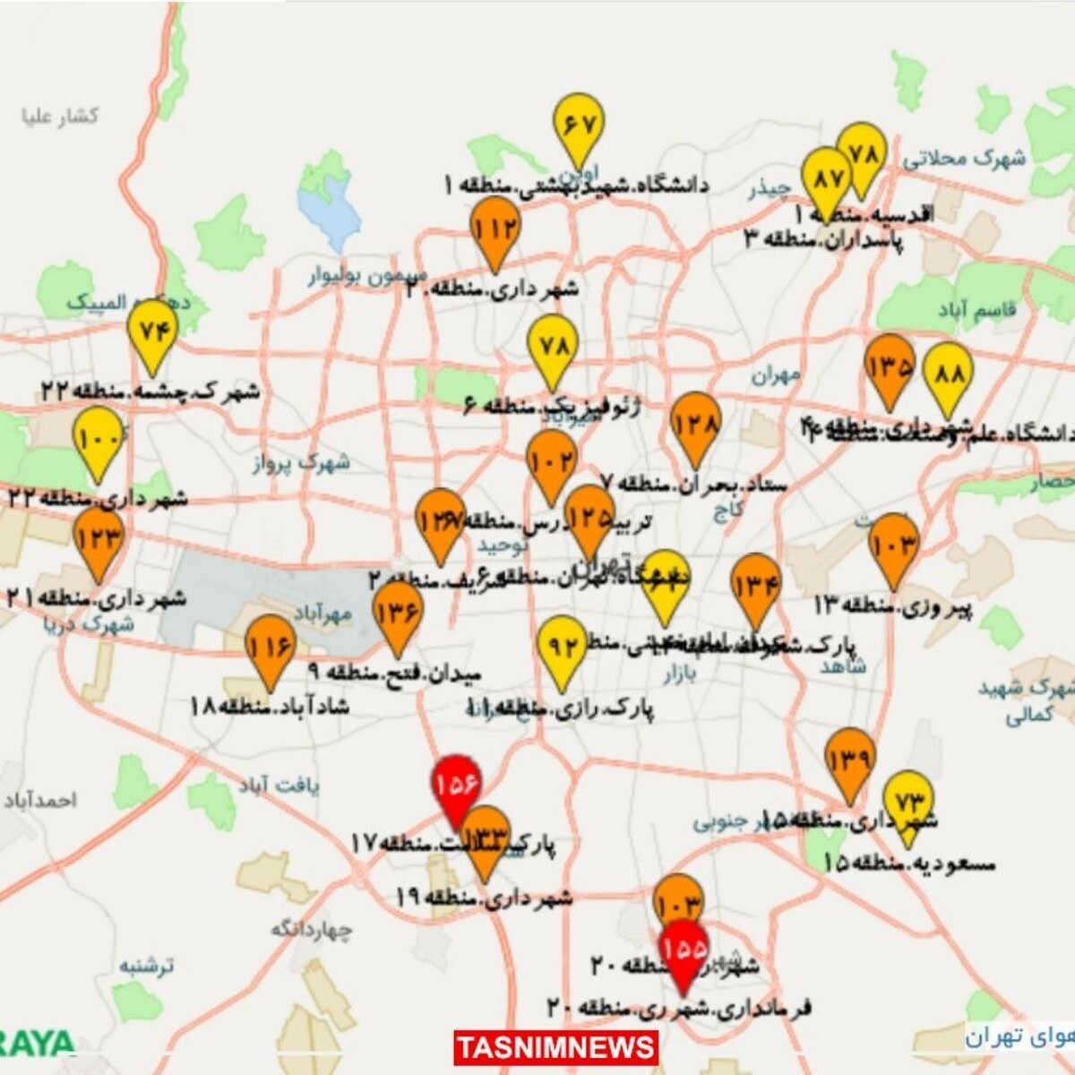بنابر اعلام شرکت کنترل کیفیت هوای تهران، شاخص آلودگی هوای پایتخت در حال حاضر ۱۰۹ می‌باشد و کیفیت هوا در وضعیت نارنجی و ناسالم قرار دارد.