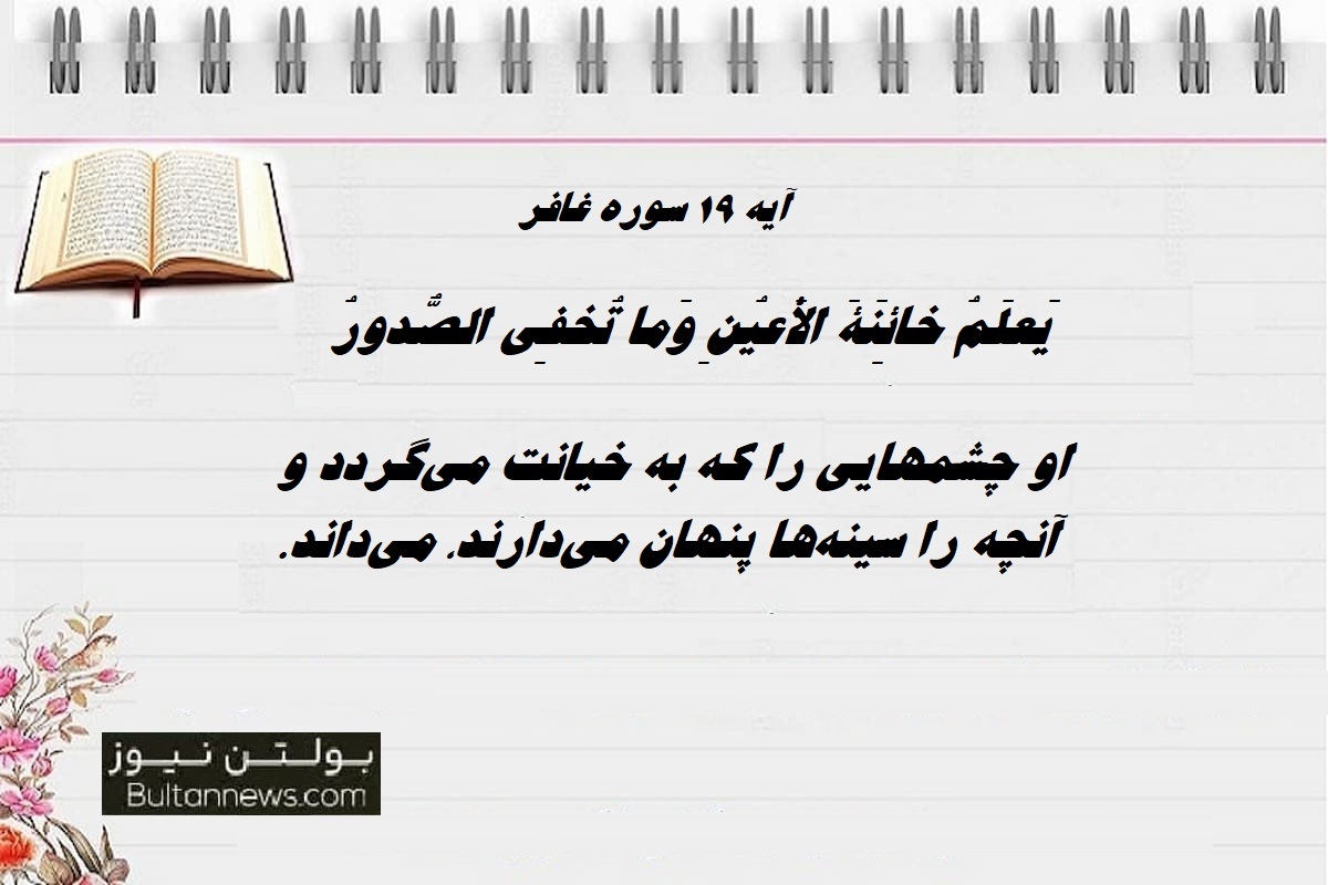 آیه 19 سوره غافر/ او چشمهایی را که به خیانت می‌گردد و آنچه را سینه‌ها پنهان می‌دارند، می‌داند.