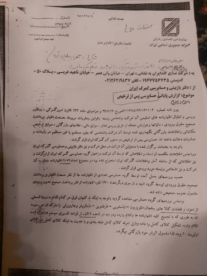 ماجرا به شرکت "صنایع گلدیران"، شریک تجاری دیرینه الجی کره جنوبی در ایران، بازمیگردد. بر اساس اسناد به دست آمده، حسابرسان گمرک در جریان بررسیهای خود بر روی بیش از ۱۶۴۰ فقره اظهارنامه وارداتی این شرکت، به یک ناهماهنگی عظیم برمیخورند. سندی که توسط "مرکز مبارزه با جرائم سازمان یافته" گمرک تنظیم شده، ابعاد این ناهماهنگی را به زبان اعداد به تصویر میکشد: مابهالتفاوت ارزش واقعی کالاهای وارداتی شرکت، که در فایل اکسل کشفشده ثبت شده بود، با ارزشی که به گمرک اظهار شده بود، رقمی بالغ بر ۵۲۴ میلیون دلار را نشان میداد.