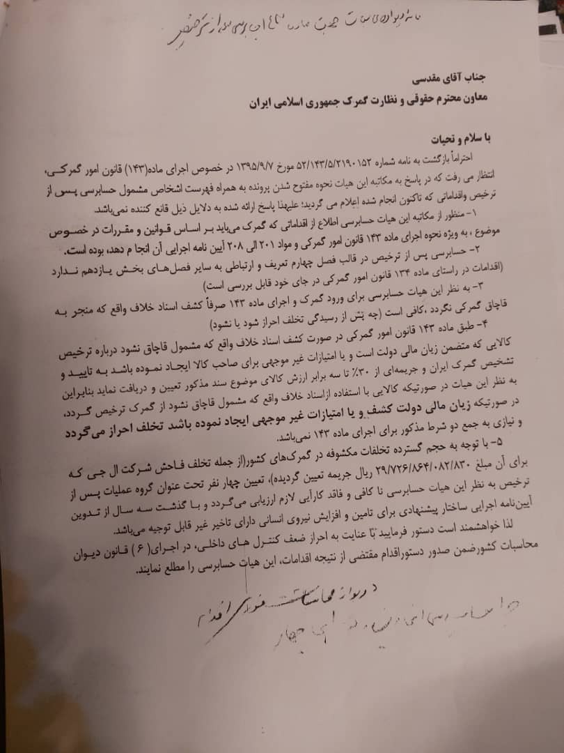 در میانه این کشمکشهای سیاسی و بوروکراتیک، معاونت حقوقی گمرک با قاطعیت از یافتههای حسابرسان خود دفاع کرد. در یک موضعگیری رسمی و حقوقی، این معاونت با استناد به ماده ۱۳۳ قانون امور گمرکی، اعلام کرد که "سند کشف شده" (همان فایل اکسل) مدرکی معتبر است و دفاعیات شرکت برای بیاثر کردن آن کافی نیست. این موضعگیری، پرونده را از یک مجادله اداری فراتر برده و آن را برای ورود به مرحله بعدی آماده میکرد: دستگاه قضایی.