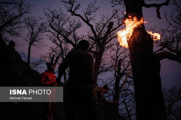 عملیات مهار آتش‌سوزی مناطق کوهستانی روستاهای دلیر و الیت