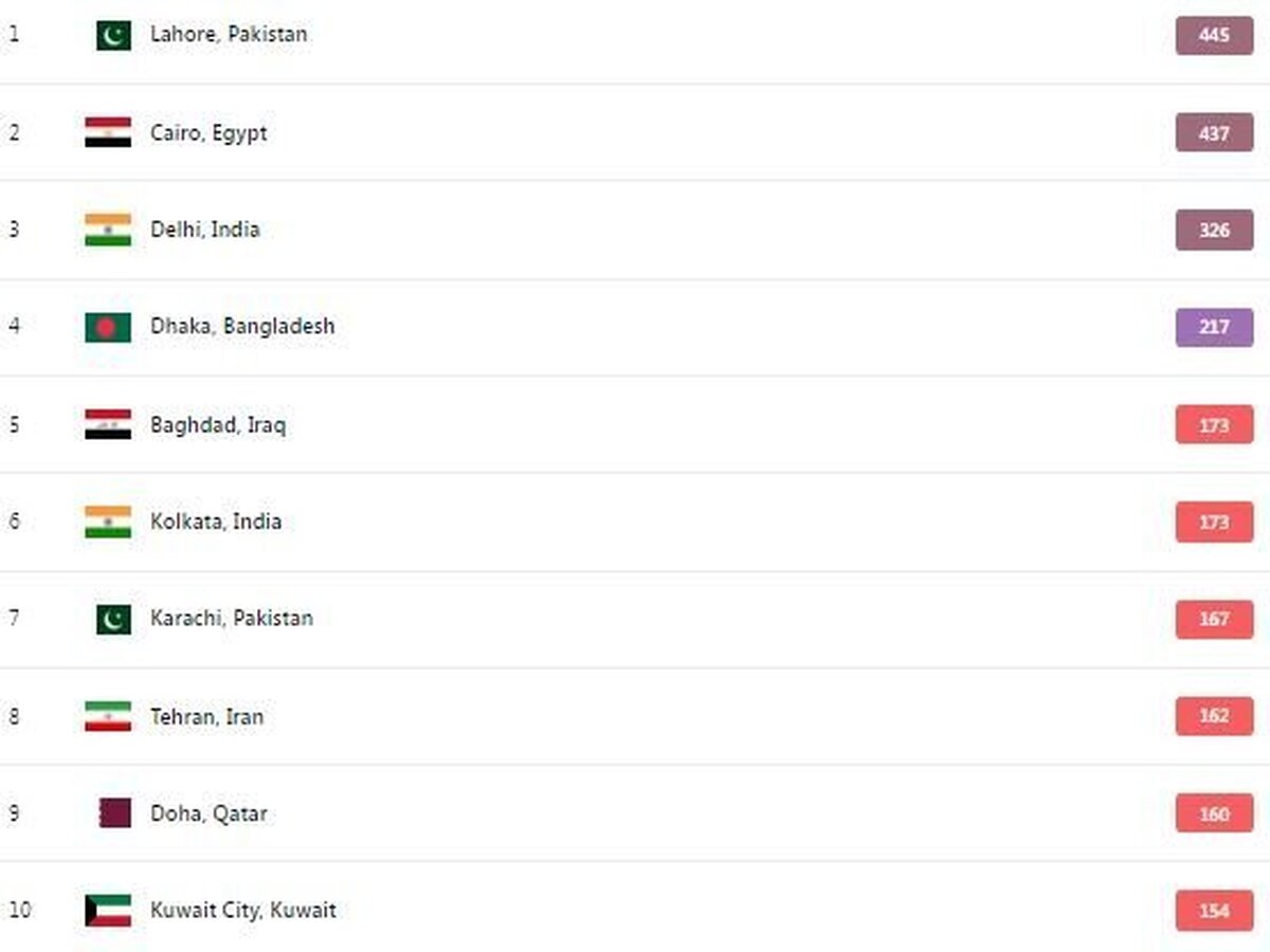 به گزارش بولتن نیوز به نقل از ایسنا، بر اساس داده‌های به‌روز شده در «پایگاه بین‌المللی سنجش و رتبه‌بندی کیفیت شهرهای جهان» (IQAIR) امروز و تا زمان انتشار این خبر، لاهور با شاخص ۴۴۵ به عنوان آلوده‌ترین شهر جهان شناسایی شده است.
