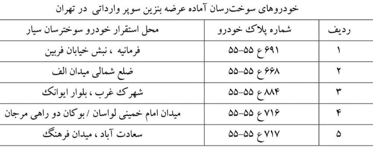 🔹۵ خودروی سوخترسان سیار مستقر در محلهای مشخص، آماده عرضه بنزین سوپر وارداتی به متقاضیان هستند.