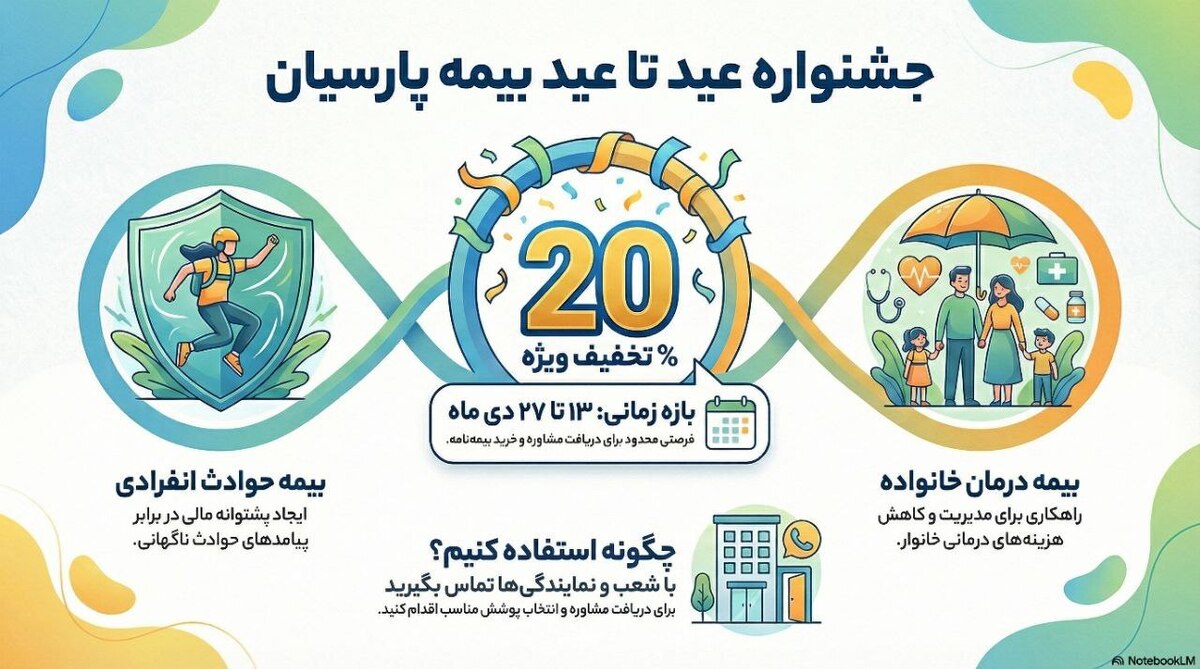 «جشنواره عید تا عید» بیمه پارسیان؛ ۲۰٪ تخفیف برای بیمه حوادث انفرادی و درمان خانواده از ۱۳ تا ۲۷ دی