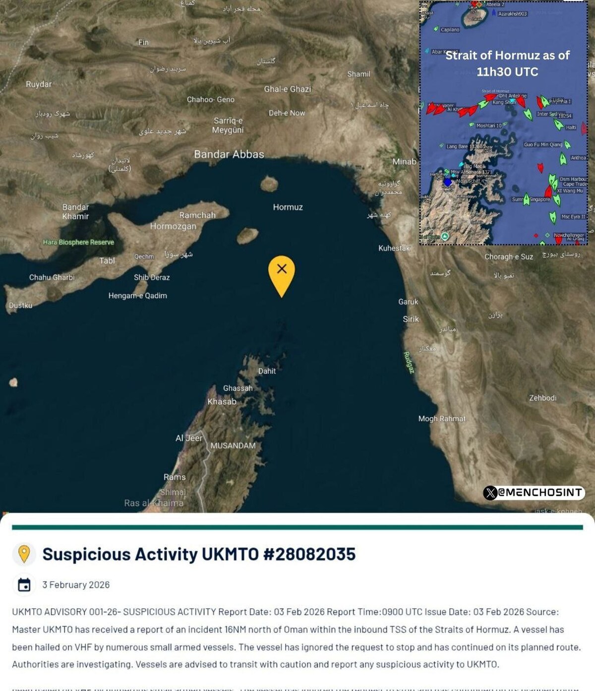 به گزارش بولتن نیوز به نقل از خبر فوری، یک کشتی در مسیر VHF توسط چندین کشتی کوچک مسلح مورد توجه قرار گرفته است. این کشتی درخواست توقف را نادیده گرفته و به مسیر برنامه ریزی شده خود ادامه داده است