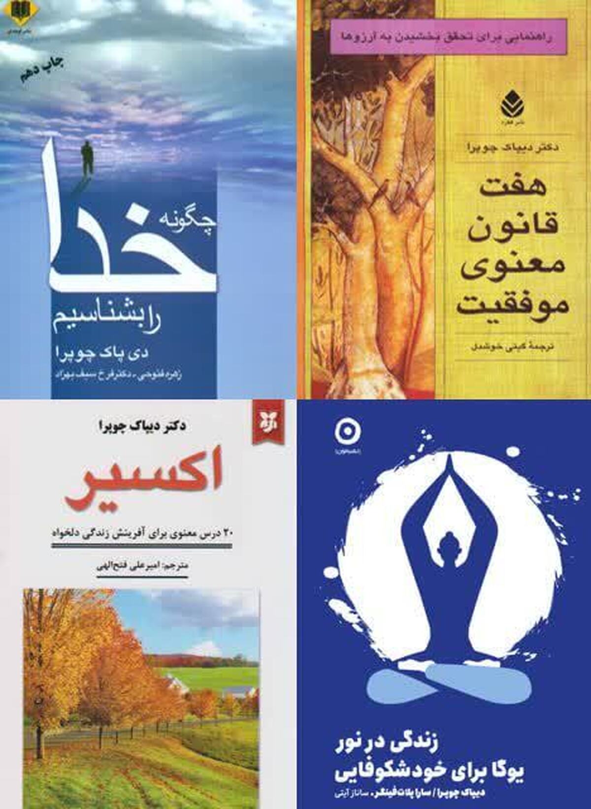 ✍ از چوپرا کتابهای متعددی از جمله چگونه خدا را بشناسیم و هفت قانون معنوی موفقیت در ایران ترجمه شده است!
