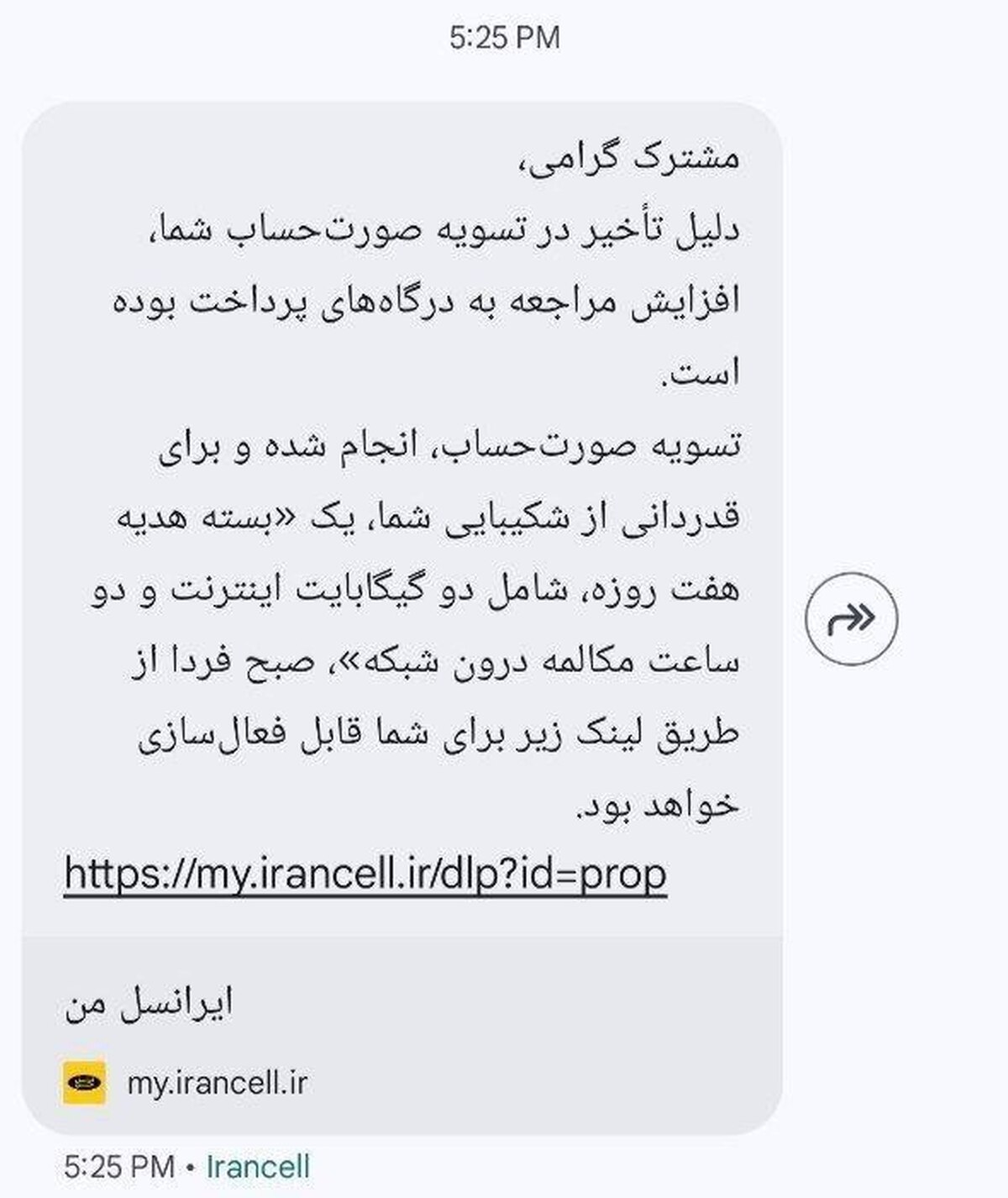 ایرانسل با ارسال پیامکی به مشترکان خود، بروز اختلال در فرآیند تسویه صورت‌حساب را علت اصلی یک‌طرفه شدن ...