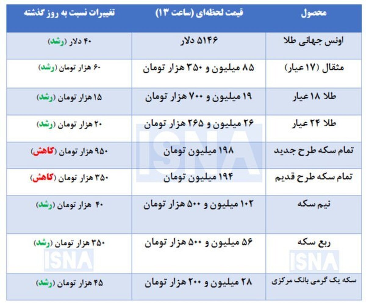 قیمت امروز سکه و طلا در بازار